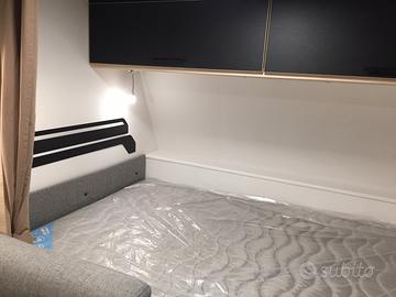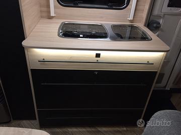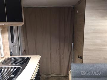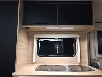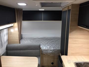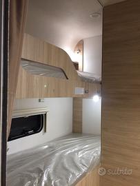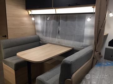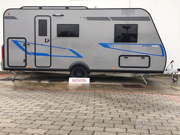 La caravan è particolarmente adatta alle famiglie con bambini, Si presenta con letto matrimoniale in testa, dinette trasformabile al centro e letto castello a volume variabile in coda. La presenza di due armadi, del letto contenitore e svariati pensili permette uno stivaggio molto capiente. Il locale toilette è completo di wc estraibile, piatto doccia e docciatore flessibile.