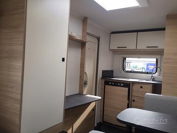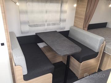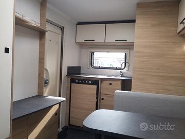 Ottima caravan 4 posti con letto matrimoniale in testa, dinette centrale e blocco cucina e toilette in coda. Con le sue dimensioni e peso contenuto risulta essere molto agile e pratica anche per spostamenti veloci. PACK COSY: gavone esterno laterale, oblò panoramico, materasso premium, zanzariera porta di ingresso, luci di lettura led. PACK SHOWER: supporto per doccetta, doccetta, tenda da doccia, serbatoio acqua da 50 litri, serbatoio acque grigie da 30 litri, boiler. PACK SAFETY: stabilizzatore AKS 3004, ammortizzatori, ruota di scorta. DIMENSIONI:Lunghezza cm 588Larghezza cm 210Altezza cm 258Peso kg. 950 LISTINO € 24.890,00PROMO € 23.390,00 SU STRADA
