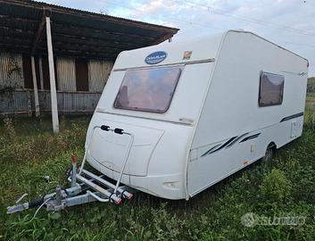 Vendo roulotte antares luxe 486 del 2006 6 posti letto ,frigo alto, veranda con estensione lato timone ecc. Lunghezza 6,645 m Larghezza 2,300 m Peso 1100 kg