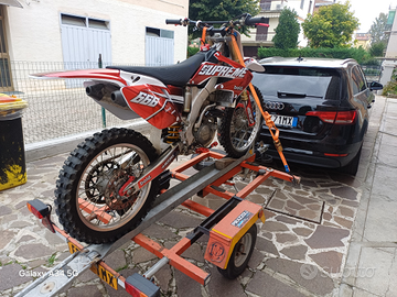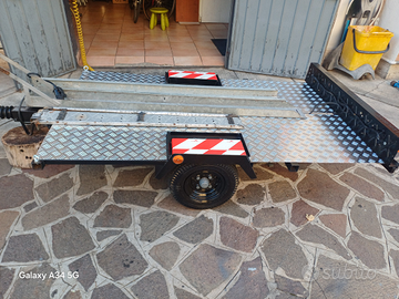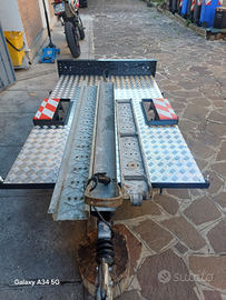 Carrello appendice trasformato in Carrello moto tutto ristrutturato zincatura e riverniciato di nero tutto funzionante luci gomme in più ruota di scorta nuove freni nuovi sia può usare come pedana per caricare qualsiasi cosa la.guida moto e estraibile anche la fanaleria e estraibile per far salire le moto compreso di rampa si trova a carpi 500 euro
