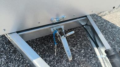 Carrello in acciaio zincato e verniciato con timone ripiegabile.