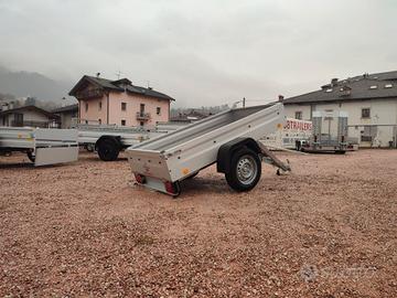 Rimorchio monoasse con timone pieghevole. Dimensioni utili di carico 2020 x 1075 x 340 mm