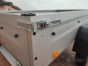 OFFERTISSIMA Rimorchio con barre rinforzate in acciaio zincato e verniciato 2020 X 1075 X 345 MM Fissa un appuntamento senza impegno, ne vale la pena! Portata complessiva fino a 750 kg, con possibilità di riduzioni. Sponda posteriore apribile. Pianale in multistrato marino. 4 ganci di ancoraggio all'interno. Ruota da carico da R13. Parafanghi singoli in robusta ABS nera. Spina a 13 poli. Timone a V richiudibile. Possibilità di rimessaggio verticale, grazie al timone richiudibile l'altezza diventa: 2120 mm. GBTRAILERS TRAILER E RIMORCHI DI PRIMA CLASSE Offriamo una vasta gamma di trailer e rimorchi in pronta consegna adatti a qualsiasi utilizzo: trasporto cavalli e animali, trasporto cose, auto, moto, macchinari, attrezzature, barche e gommoni. Disponiamo di due grandi esposizioni con modelli fuoristrada, ribaltabili, furgonati, basculanti, monoasse, doppio asse e triplo asse. Possiamo soddisfare ogni esigenza di trasporto grazie alla varietà dei nostri rimorchi. Fissa un appuntamento senza impegno, ne vale la pena! Martino: Negozi: -- Sede di Pergine Valsugana Via Al Dos de la Roda, 43 - Cirè - Pergine (TN) -- Sede di Verona Loc. Cà di Capri, 104 - Bussolengo - Verona (VR)