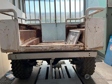 Vendo carrello non omologato ricavato da una jeep Cj con mezzo telaio,ponte posteriore,balestre e ruote 31/10.50 r15 nuove ma datate originali jeep Cj 7 4200cc del 1986,dimensioni:150 cm larghezza,130 cm altezza e 120cm più 95 cm di timone per un totale di 215 cm la lunghezza.