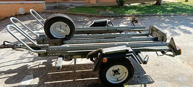 Vendesi per inutilizzo carrello moto Ellebi a 3 slitte, portata 395 kg, pneumatici nuovi con ruota di scorta, impianto elettrico perfettamente funzionante, ammortizzatore rifatto nuovo.