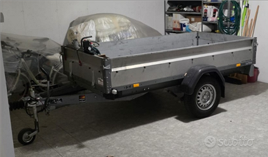 Vendo carrello trasporto cose, moto, tedesco, marca Stema 13 quintali, omologato 800, pianale in legno marino, ruote da 13 pollici, fermaruota, misure utili 250x130, misure totali 370x176 peso 251 kg, carrello super rinforzato, come nuovo