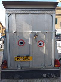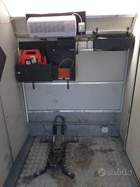All'interno un ferma ruota, pompa di calore aria calda/fredda, led, batteria da attaccare alla 200v con uscita esterna nella parte davanti. Porta laterale a dx con serratura e portellone retro utilizzo rampa (chiusura con lucchetto). Ruota di scorta+freno a mano.