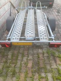 Carrello porta moto Ellebi 2 posti moto. Il rimorchio è attrezzato di ruota di scorta, rampa, lucchetto, ruotino per gli spostamenti quando il rimorchio non è agganciato. Attenzione la revisione è a carico dell'acquirente.