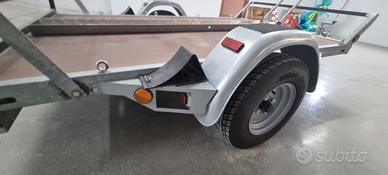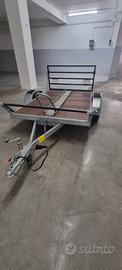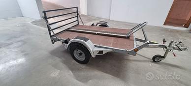 Carrello porta moto/quad/cose. Trainabile con patente B, pianale basculante per agevolare la salita, in condizioni perfette sempre custodito al coperto, usato pochissimo, portata utile 460 Kg. Pneumatici al 90 % .