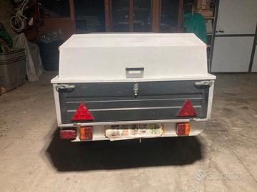 Carrello in lamiera zincata, verniciatura a forno,originale in ottime condizioni,no ruggine e ammaccature,sempre in garage,utilizzato poco e mai a pieno carico,gomme in ottime condizioni,+ ruota di scorta in scomparto sotto pianale,molleggiato,frenato e con freno a mano,cavo per blocco,fari funzionanti.Certificati originali compresi.Disponibile per visione.
