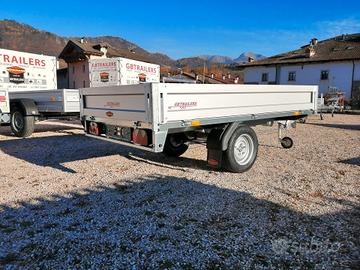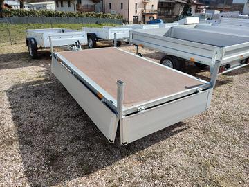 OFFERTISSIMA! Carrello rimorchio frenato trasporto cose doppio asse misure 2560 x 1400 x 300 mm Fissa un appuntamento senza impegno, ne vale la pena! Anche disponibile nelle misure: 2560 x 1650 mm Fino a 1350 Kg la portata complessiva con possibilità di riduzioni Ruotino rinforzato 13 pin l'impianto elettrico R12 le ruote da carico Scomparsi nel cassone i ganci di fissaggio in acciaio inox Sponde laterali in alluminio di alta qualità Pianale in robusto multistrato marino Fissa un appuntamento senza impegno, ne vale la pena! Martino: GBTRAILERS TRAILER E RIMORCHI DI PRIMA CLASSE Offriamo una vasta gamma di trailer e rimorchi in pronta consegna adatti a qualsiasi utilizzo: trasporto cavalli e animali, trasporto cose, auto, moto, macchinari, attrezzature, barche e gommoni. Disponiamo di due grandi esposizioni con modelli fuoristrada, ribaltabili, furgonati, basculanti, monoasse, doppio asse e triplo asse. Possiamo soddisfare ogni esigenza di trasporto grazie alla varietà dei nostri rimorchi. Negozi: -- Sede di Pergine Valsugana Via Al Dos de la Roda, 43 - Cirè - Pergine (TN) -- Sede di Verona Loc. Cà di Capri, 104 - Bussolengo - Verona (VR)