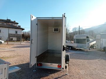 RIMORCHIO FRIGO 2470 x 1270 mm IN PRONTA CONSEGNA Fissa un appuntamento senza impegno, ne vale la pena! PER INFO CHIAMA MATTIA: Altezza interna elevata di 2000 mm Massa complessiva di 1300 Kg Ruotino automatico e rinforzato per carichi pesanti 2 robuste e comode maniglie di manovra sulla parete frontale Sistema di raffreddamento rapido del carico Porta posteriore a doppia anta chiudibile a chiave Pavimento in playwood sigillato, incollato e antiscivolo rivestito con lamiera striata in alluminio mandorlato 4 anelli di ancoraggio sul pavimento Illuminazione interna a Led con luce bianca e luce azzurra Robusti supporti anteriori e posteriori Pneumatici R14 Parafanghi singoli in robusta plastica nera PRENOTA UN APPUNTAMENTO SENZA IMPEGNO, NE VALE LA PENA CHIAMA MATTIA: GBTRAILERS TRAILER E RIMORCHI DI PRIMA CLASSE Negozi: -- Sede di Pergine Valsugana Via Al Dos de la Roda, 43 - Cirè - Pergine (TN) -- Sede di Verona Loc. Cà di Capri, 104 - Bussolengo - Verona (VR)