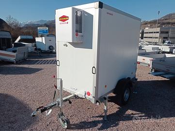 RIMORCHIO FRIGO 2470 x 1270 mm IN PRONTA CONSEGNA Fissa un appuntamento senza impegno, ne vale la pena! Altezza interna elevata di 2000 mm Massa complessiva di 1300 Kg Ruotino automatico e rinforzato per carichi pesanti 2 robuste e comode maniglie di manovra sulla parete frontale Sistema di raffreddamento rapido del carico Porta posteriore a doppia anta chiudibile a chiave Pavimento in playwood sigillato, incollato e antiscivolo rivestito con lamiera striata in alluminio mandorlato 4 anelli di ancoraggio sul pavimento Illuminazione interna a Led con luce bianca e luce azzurra Robusti supporti anteriori e posteriori Pneumatici R14 Parafanghi singoli in robusta plastica nera Fissa un appuntamento senza impegno, ne vale la pena! Martino: GBTRAILERS TRAILER E RIMORCHI DI PRIMA CLASSE Negozi: -- Sede di Pergine Valsugana Via Al Dos de la Roda, 43 - Cirè - Pergine (TN) -- Sede di Verona Loc. Cà di Capri, 104 - Bussolengo - Verona (VR)