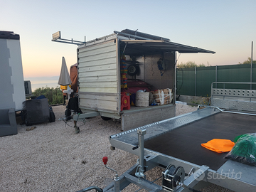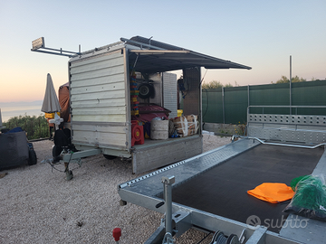 Vendo per passaggio a categoria superiore rimorchio auto portata 1200 kg, ma garantisco può molti in più.misure 3.700x1.950 nel 2017 e stato smontato totalmente sabbiato e zingato,tetto in resina portapacchi porte tutte apribili da libretto H.183. L.185. P.250