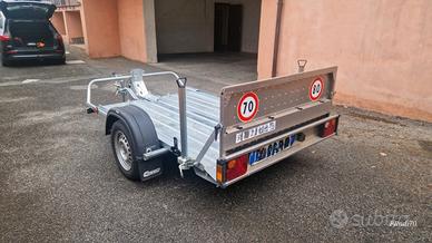 Vendo carrello rimorchio ad asse centrale praticamente nuovo, rampa di carico per salire qualsiasi veicolo, telaio profilato di grosso spessore, piano di carico con lamiera sagomata, robusti ganci ad anello per qualsiasi tipo di fissaggio. Immatricolato a marzo 2025.