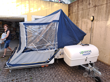 Carrello tenda con veranda anteriore. Portabici. Tubi porta pali della veranda.