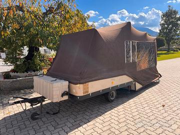 carrello tenda combi camp easy completo di veranda e paleria con ruota di scorta ha qualche segno del tempo ma è perfettamente utilizzabile