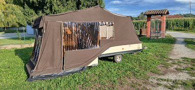 Vendo causa inutilizzo carrello tenda Combi Camp Easy, anno 89, in ottime condizioni. Completo di materasso matrimoniale e lettino basculante all'interno. Oltre alla veranda integrata, regalo veranda esterna aggiuntiva con paleria completa.