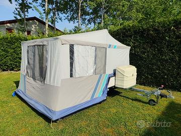 Carrello Tenda Combi Camp Family Anno 2006 Ben conservato, pulito, pronto a partire Revisione ok fino a 11/2026 Montaggio rapido 1 minuto Kit per 2 letti matrimoniali in dotazione Trattabile