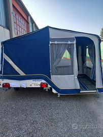 In vendita Carrello Tenda 4 posti (2 camerette), con VERANDA tutto accessoriato. Incluso di cucina accessoriata con bombola a gas e utensili, tavolo e sedie, wc chimico. Telefonare per informazioni a 348.6974034