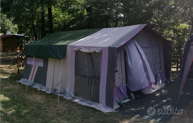 Carrello Tenda rimorchio Jamet Canyon anno 1990, gomme nuove di due anni, ultima revisione 03/2025 e bollo 2026 pagato, 4 posti letto (matrimoniale da un lato una piazza e mezza dall' altro), misure solo carrello aperto 3,50x3,60 oltre a 1mt circa di gancio, misure con veranda 3,50x5,31 oltre a 1mt circa di gancio. Completo di veranda, tendalino, tende e piumoni originali e portapacchi in ferro collegato al carrello.