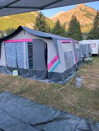 Vendo carrello tenda Raclet modello corail, due letti matrimoniali, cucina a due fuochi pavone sul timone per trasporto frigo o eventuali, completo di veranda, montaggio della zona notte rapido, buone condizioni generali, meccanica e luci ok, gomme ok collaudo valido fino a giugno 2027, trattabile dopo visione.