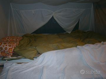 vendesi carrello tenda chantilly del 2004, tenuto maniacalmente bene, sempre rimessato e sempre pulito dopo l'uso. Usato per 5 o 6 anni poi cambiato tipologia di vacanze. il carrello chiuso è lungo 3.2mt x 2mt alto 1.10mt. si apre a libro con corridoio centrale, due letti da 1 piazza e mezza sui lati con relativa privacy e finestre oscuranti e zanzariere, pavimento in laminato color ciliegio, 3 cassapanche capienti di cui una con serratura. impianto elettrico sia all'interno che all'esterno. Materassi dei due letti spessi 10cm di spugna ad alta densità nuovi. il carrello ha i seguenti accessori: