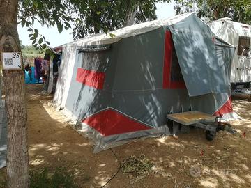 Vendo carrello tenda Trigano Jamet Canyon, immatricolato a Dicembre 2000, ideale per vacanze in famiglia. ✔️ Lunghezza: 3,45 m ✔️ Larghezza: 1,43 m ✔️ 4 posti letto ✔️ Dimensioni aperto con veranda: circa 3,5 x 5 m ✔️ accessoriato con mobiletto cucina (fornello/lavandino) ✔️ Ultima revisione effettuata 07/2025 (prossima 07/2027) ✔️ timone a V ✔️ ruota di scorta Carrello in buone condizioni generali, sempre utilizzato con cura. Ideale per chi vuole provare l'esperienza del campeggio confortevolmente senza i costi di camper o roulotte. Prezzo: 1.500€ trapasso e ritiro a carico del compratore Disponibile per visione.