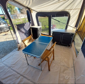 Sempre rimessato al coperto nel box di casa. È completo di: cucina, materassi e doghe in legno, bombola a gas, gavone anteriore, picchetteria e 2 teli isolanti da mettere sotto la zona giorno.