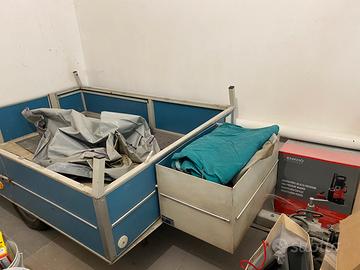 Vendo carrello traino perfettamente funzionante, dimensioni 145 cm di larghezza, 204 cm di lunghezza, 300 cm di lunghezza con timone.