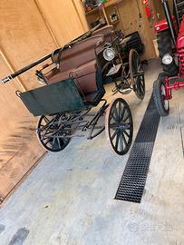 Splendida carrozza a 4 ruote con lama di ferro non ricoperta. Una singola porta posteriore permette la salita dei passeggeri se si utilizza la carrozza come break o il contenimento delle provviste nella versione tabacchiera.