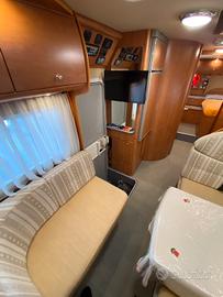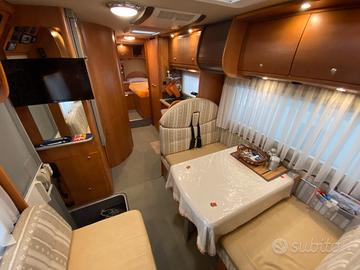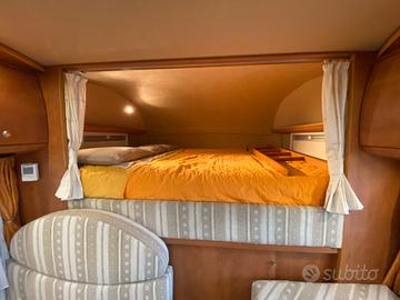 Favoloso mansardato tenuto in modo maniacale, sempre rimessato e tagliandato. Conformazione con letti gemelli, bagno con doccia separata, angolo cucina, grande dinette con divano, ampia mansarda e garage portamoto. Doppio pavimento da 38 cm, telaio Alko biasse, riscaldamento Truma Alde ideale per la montagna. Distribuzione fatta il 2023, tagliando 2024 e gomme sostituite il 2024 (Continental 4 season 4 stagioni ).