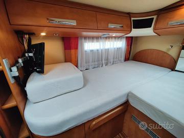 SB camper propone stupendo camper patente C Carthago per non avere più problemi coi limiti di peso. Accessori e caratteristiche principali: Antenna satellitare automatica, per ricevere i canali TV ovunque tu sia. Pollicino per caricare la moto in autonomia Climatizzatore per viaggiare e sostare sempre al fresco, anche nelle giornate più calde. Porta Hartal a 3 chiusure, sinonimo di robustezza e sicurezza. pannello solare per una autonomia maggiore Riscaldamento Alde per i climi più rigidi Un camper che unisce eleganza, tecnologia e praticità, ideale per viaggi lunghi e confortevoli.