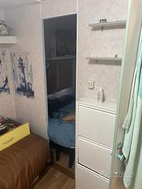 CASA MOBILE / BUNGALOW SU RUOTE - PRONTA ALL'USO (con bagno e doccia) 6x3 mt Vendo casa mobile tipo bungalow in buone condizioni, ideale come casa vacanze, appoggio per weekend in campagna/terreno, oppure come soluzione temporanea. Interni curati e funzionali: bagno completo con doccia, zona letto e spazi contenitivi. o Struttura su ruote (tipo casa mobile/bungalow) o Bagno completo: wc + doccia + lavandino (come da foto) o Ambienti comodi e già arredati o Perfetta per terreno, campeggio, area privata o Disponibile per visione dal vivo Condizioni: usata, come da foto (normali segni del tempo). Ritiro e trasporto a carico dell'acquirente. Scrivimi in privato per prezzo, o per venire a vederla.