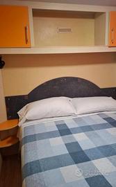 Vendesi casa mobile 8x3. 1 camera matrimoniale 1 camera con 3 letti singoli di cui uno a castello 1 bagno con doccia + 1 piccolo bagno con water Angolo cottura ampio con divano. Tutto in ottimo stato.