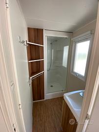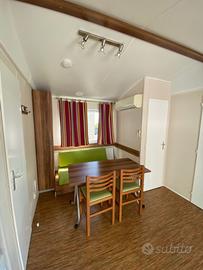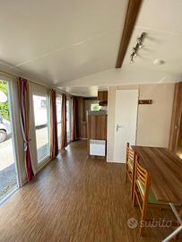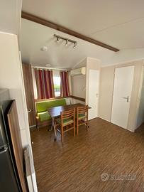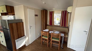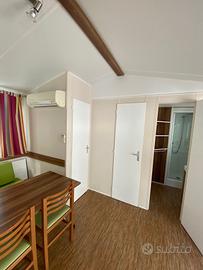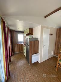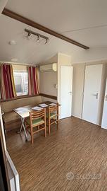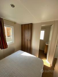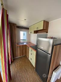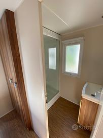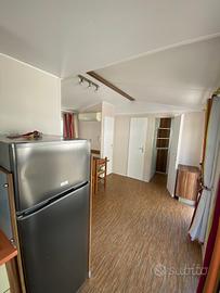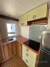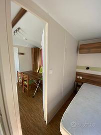 Casa mobile composta da una camera matrimoniale, cameretta ragazzi con due letti singoli, salotto con divano trasformabile in letto matrimoniale, cucina lineare e doppi servizi.