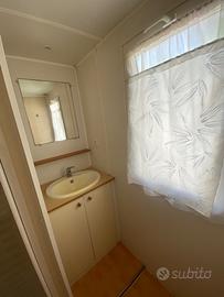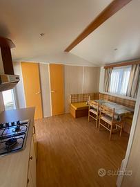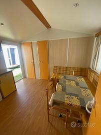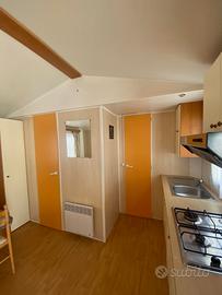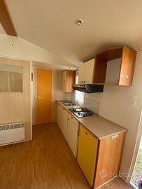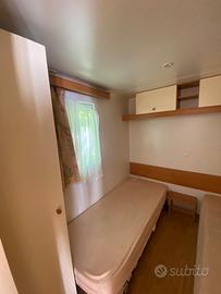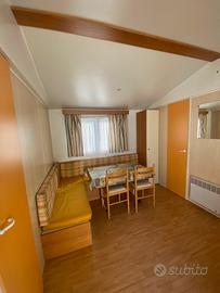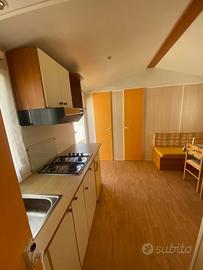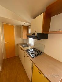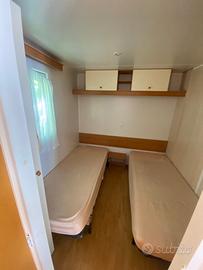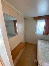 Casa mobile composta da una camera matrimoniale, cameretta ragazzi con due letti singoli, salotto con divano trasformabile in letto matrimoniale, cucina lineare e doppi servizi.
