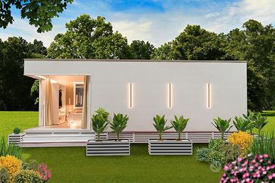 telaio in ferro zincato, pannelli coibentati ad alta efficienza, pavimento in gres-porcellanato con battiscopa in ceramica Made in Italy, impianti elettrici e idrici sottotraccia, rivestimenti bagno in ceramica e cassetta ad incasso GEBERIT. Gli infissi in PVC con vetrocamera e zanzariere assicurano un eccellente isolamento termico e acustico.
