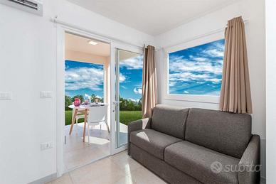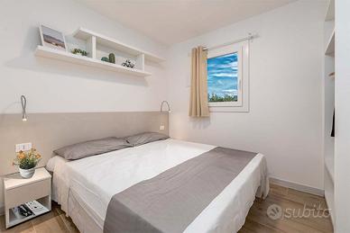 All'interno, ogni modello offre un soggiorno luminoso con cucina integrata, perfetto per vivere la quotidianità con praticità e comodità. La camera matrimoniale garantisce un riposo confortevole, mentre la cameretta con due letti singoli è ideale per bambini o ospiti. Il bagno completo è rifinito con materiali resistenti e linee moderne, assicurando funzionalità e una manutenzione semplice.