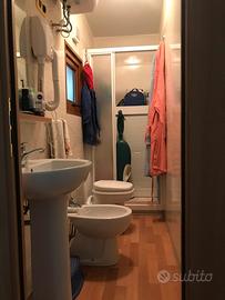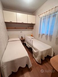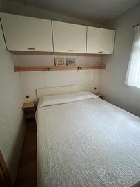 Vendo casa mobile, produttore Mario di Fina, due moduli ognuno di 750 x 295, anno 2009, in ottime condizioni, completamente arredata, camera matrimoniale, camerina con due letti singoli, bagno con wc chimico e sanitari in ceramica, salotto con divano con un posto letto, cucina attrezzata, veranda chiusa con teli scorrevoli e finestrati, carrello omologato, no perditempo, altre foto disponibili.
