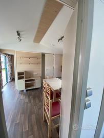 Casa mobile composta da camera matrimoniale, cameretta ragazzi, cucina separata, salotto con divano trasformabile in letto martrimoniale, doppi servizi.