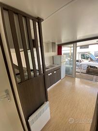 Casa mobile marca O'Phea, composta da camera matrimoniale, cameretta ragazzi, salotto con divano letto e doppi servizi. La casetta è dotata di condizionatore, stufette elettriche e boiler a gas.