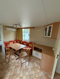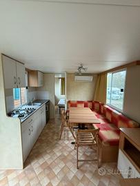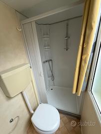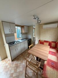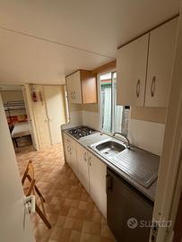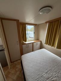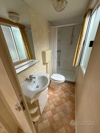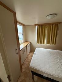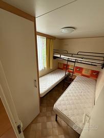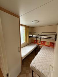 Casa mobile marca Shelbox, composta da una camera matrimoniale, cameretta ragazzi con 3 letti singoli, salotto con divano trasformabile in letto matrimoniale, cucina lineare e bagno con box doccia.