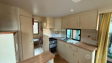 Casa mobile marca Shelbox, composta da una camera matrimoniale, cameretta ragazzi con 3 letti singoli, salotto con divano trasformabile in letto, cucina e bagno completo di box doccia.