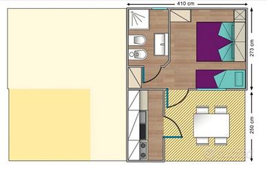 Plan: 2 camere 2 cucina 2 bagni doccia lavabo