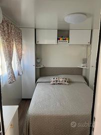 casa mobile (AL MOMENTO è A FOLLONICA) su ruote 8x2,50 mt, anno costruzione composta da 2 camere matrimoniali e 1 zona giorno, dotata di aria condizionata e zanzariere, passaggio proprietà e trasporto a carico dell'acquirente