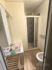 Bella casetta mobile con altezza superiore alle altre e camera matrimoniale standard.