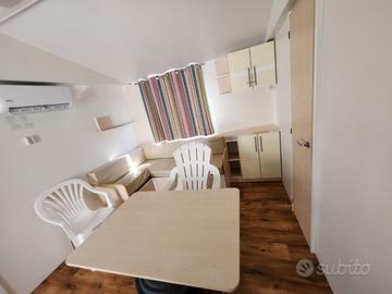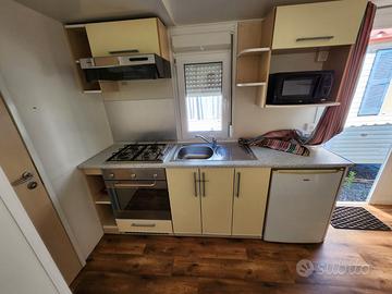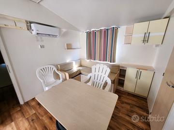 Si vende come fine serie ultima casa mobile Sun Roller 7.2x4 composta da ampio soggiorno con cucina e divano, due camere, bagno con wc e bagno con doccia e lavandino.