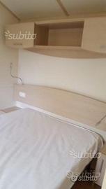 Casa mobile SCHELBOX DELUX mt 8x3, con aria condizionata, camera matrimoniale, cameretta con 3 letti, soggiorno cucina, infissi in PVC, vetro doppia camera, tetto doppia falda, casa mobile con ruote timone e gancio traino tipo roulotte.