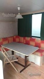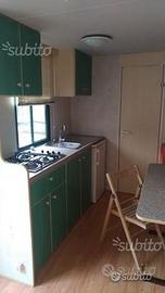 Casa mobile Schelbox 8MT X 3MT con tetto doppia falda , completamente arredata con una comoda cucina, soggiorno , due camere, matrimoniale e cameretta con 3 letti , bagno con doccia lavabo e wc.